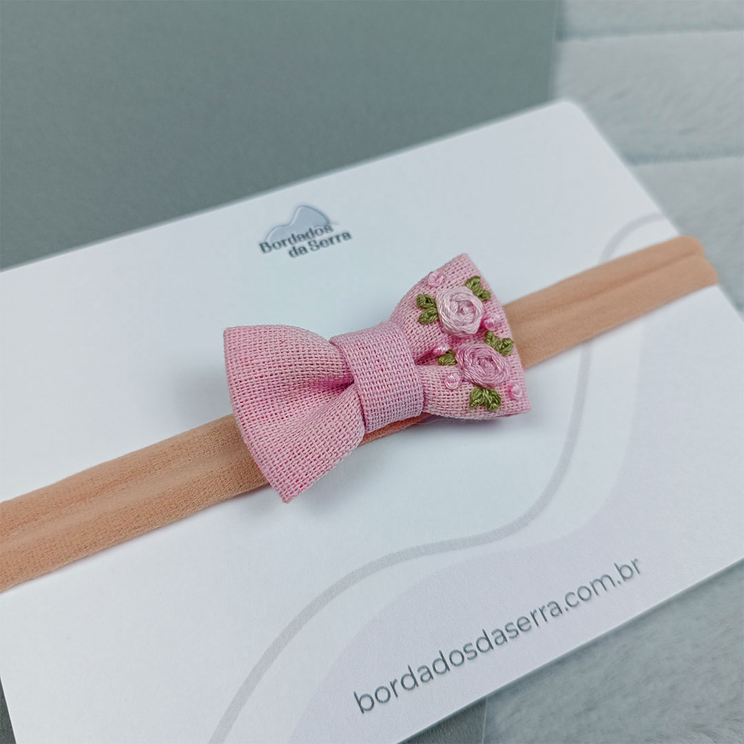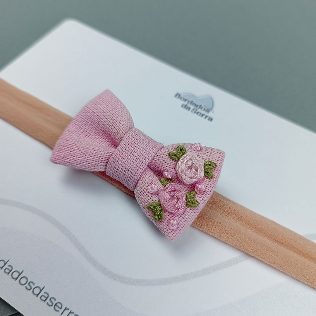 Lacinho delicado e cuidadosamente bordado à mão. A faixinha de meia de seda é super flexível e confortável, se adaptando à cabeça do bebê e permitindo seu uso até os 2 anos de idade. Um acessório feito com carinho para momentos especiais.